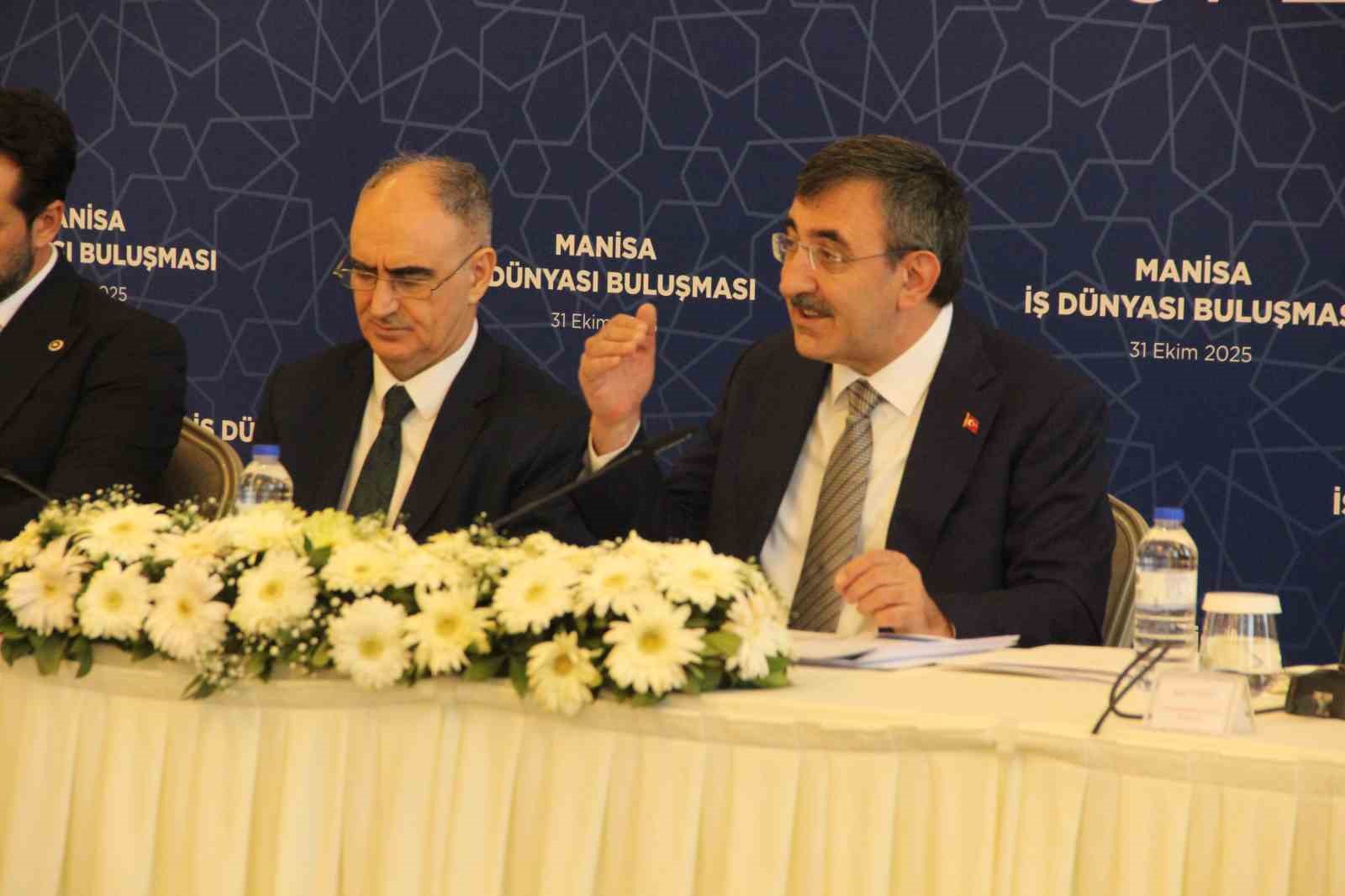 Cumhurbaşkanı Yardımcısı Cevdet Yılmaz, Manisa’da iş dünyasının temsilcileriyle buluştu. Cumhurbaşkanlığı Genel Sekreteri Hakkı Susmaz, Manisa Valisi Vahdettin Özkan, AK Parti Grup Başkanvekili ve Manisa Milletvekili Bahadır Yenişehirlioğlu, AK Parti Manisa milletvekilleri Mücahit Arınç, Murat Baybatur, Tamer Akkal, Manisa Ticaret ve Sanayi Odası Başkanı Mehmet Yılmaz, sanayiciler ve iş adamları katıldı.