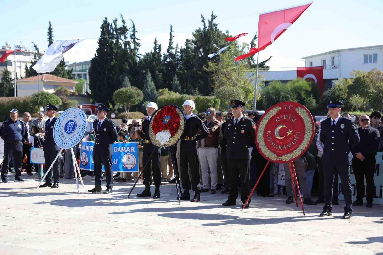 Cumhuriyet Kent Meydanı’nda gerçekleştirilen tören Didim Kaymakamı Mesut Çoban, Didim Garnizon Komutanı Albay Erkut Arslan, Didim Belediye Başkanı Hatice Gençay, Didim Cumhuriyet Başsavcısı Anıl Altay ve Didim Emniyet Müdürü Yunus Dinç’in yanı sıra ilçe protokolü, kamu kurum amirleri, siyasi parti temsilcileri, askeri erkan, öğrenciler ve halkın geniş katılımıyla gerçekleşti.