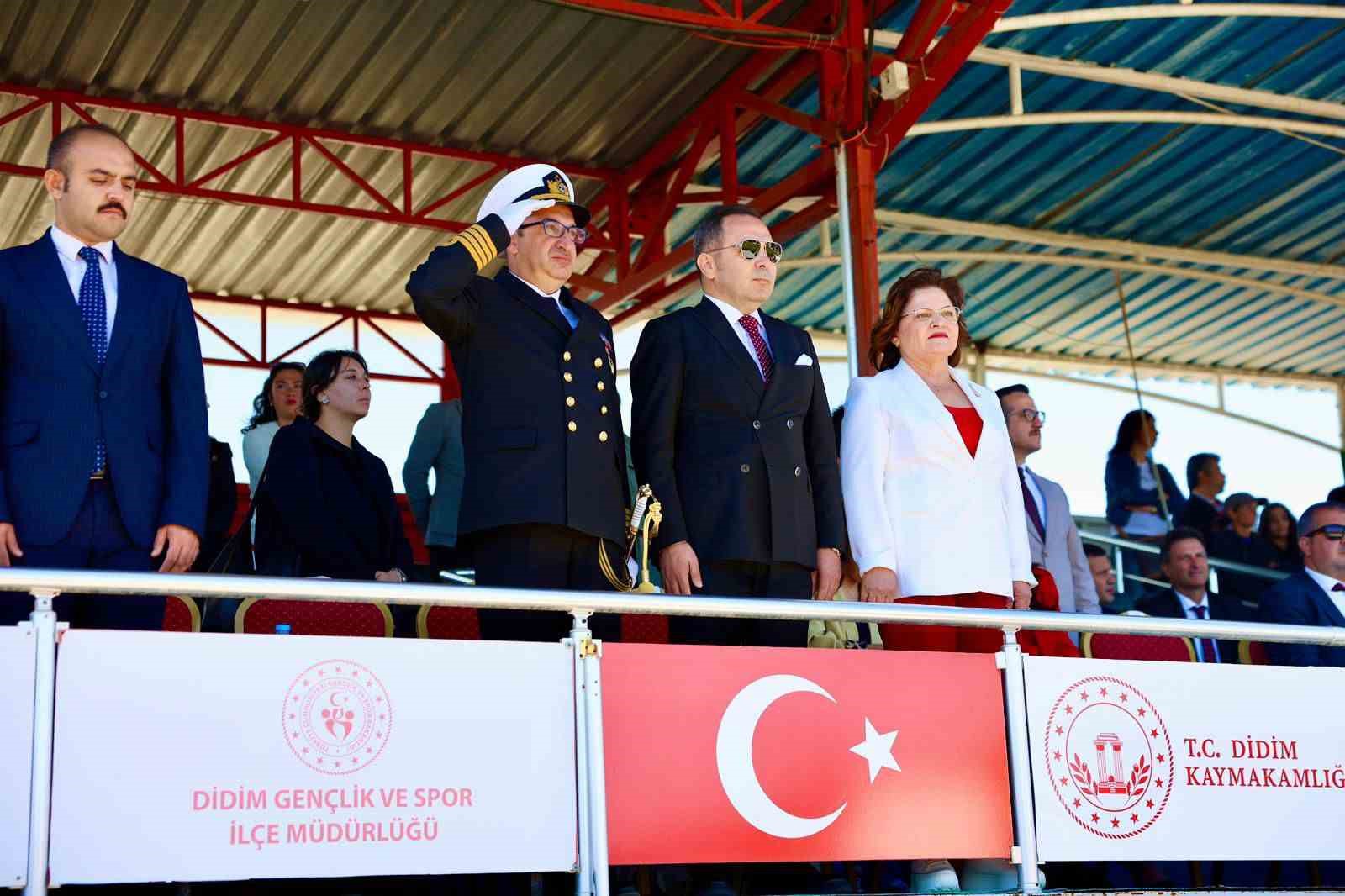 Törene Didim Kaymakamı Mesut Çoban, Didim Garnizon Komutanı Erkut Arslan, Didim Belediye Başkanı Hatice Gençay, Didim Cumhuriyet Başsavcısı Anıl Altay, ilçe protokolü, kamu kurumlarının temsilcileri, siyasi parti temsilcileri, öğretmenler, öğrenciler ve halkın yoğun katılımıyla gerçekleşti. Program, ilçe protokolünün halkın ve öğrencilerin bayramını kutlamasıyla başladı. Saygı duruşu ve İstiklal Marşı’nın okunmasının ardından günün anlam ve önemini anlatan konuşmalar gerçekleştirildi. Öğrenciler tarafından hazırlanan şiirler ve gösteriler sunuldu. Programın en unutulmaz anlarından biri ise Cumhuriyet’in 102. yılına özel hazırlanan 102 kişilik zeybek gösterisi oldu. Coşkuyla sergilenen zeybek performansı, stadyumu dolduran kalabalıktan büyük alkış aldı ve izleyenlere gurur dolu anlar yaşattı.