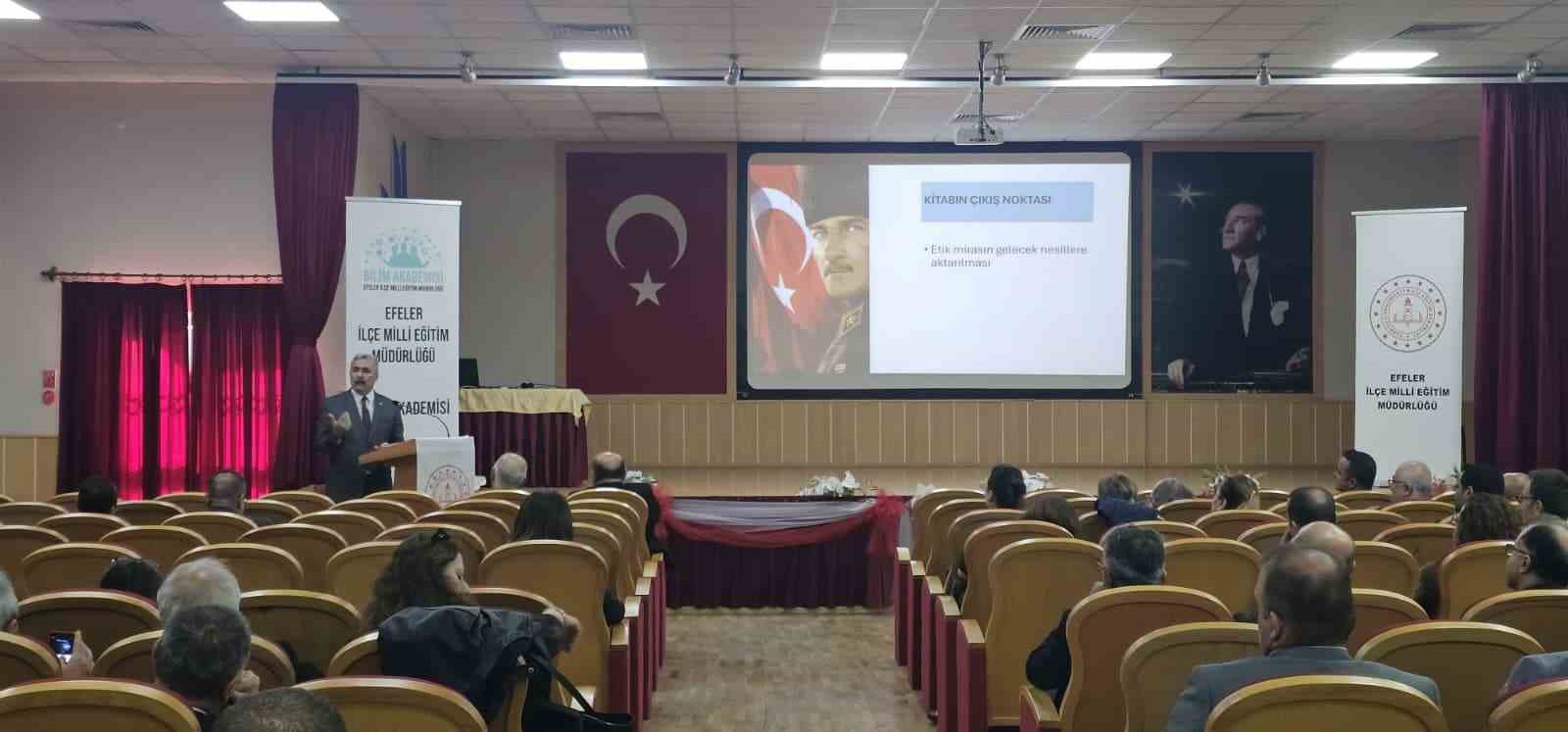 Efeler İlçe Milli Eğitim Müdürlüğü, okul yöneticilerinin mesleki ve entelektüel gelişimini destekleyen “Eğitim Yöneticileri Okuyor” projesinin yeni dönemini başlatırken, projede, bu yılın ilk kitabı Prof. Dr. Hikmet Özdemir’in “Atatürk’ün Etik Mirası” eseri oldu.