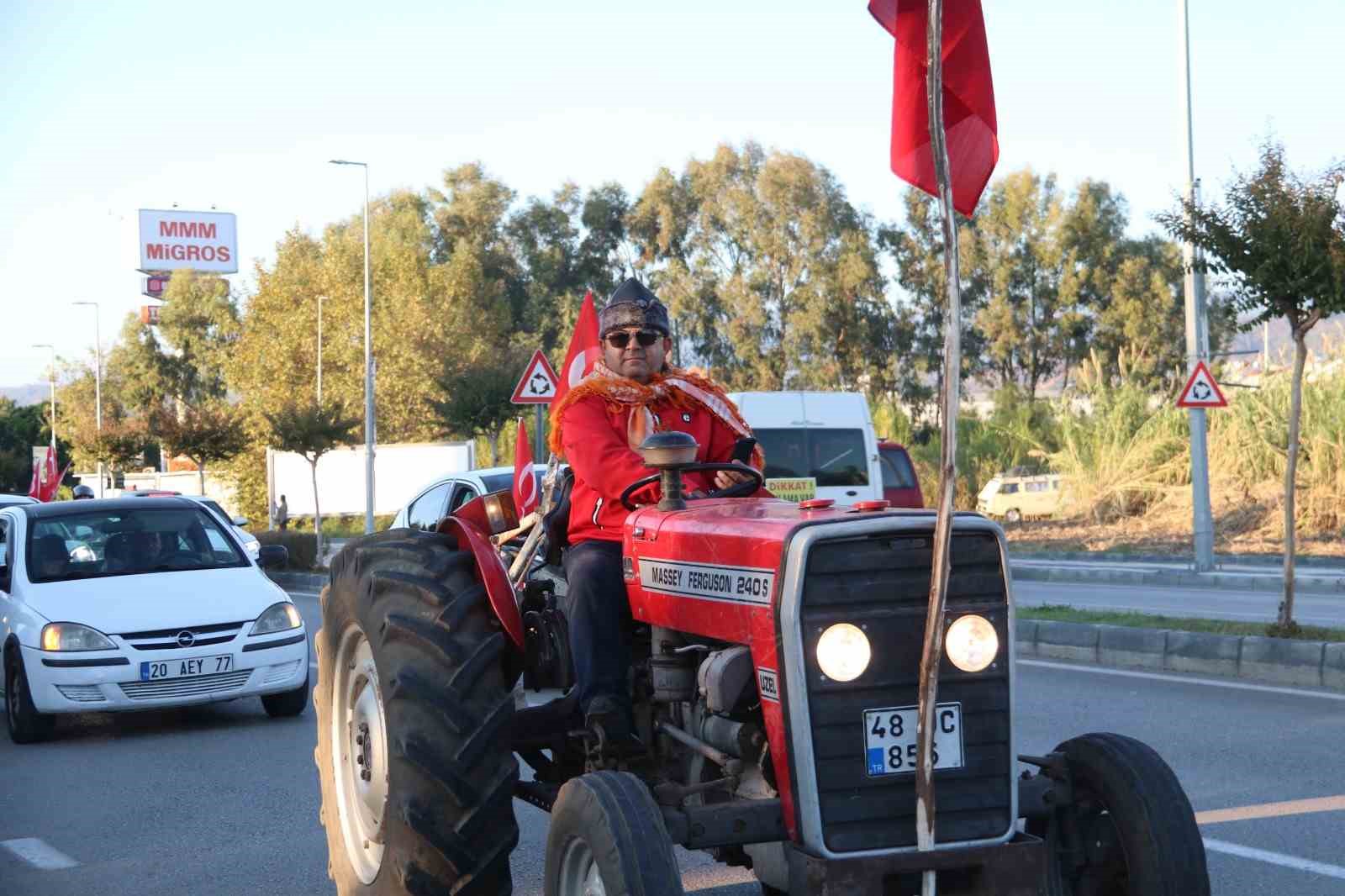 Cumhuriyet’in ilanının 102. yılı kutlamaları kapsamında Fethiye Körfezi’nde deniz alayı ve karada araç konvoyu düzenlendi. Bayraklarla süslenen tekneler, traktörler, otomobiller ve motosikletler, marşlar eşliğinde korteje katıldı.