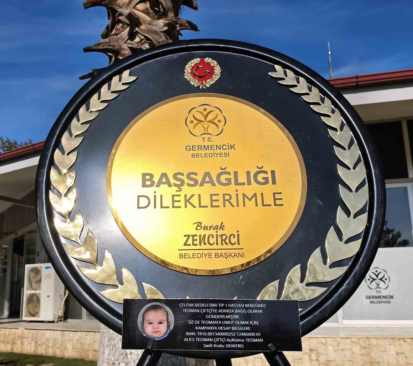 Uygulama çerçevesinde ilk bağışlar tedavisi devam eden bebek Teoman Çiftçi’nin tedavisi için gönderildi. Çelenk bedeli bağışlanarak farkındalık ve bilgilendirme amacıyla gönderilen temsili çelenk üzerinde bu bilgiye yer verilirken konuyla ilgili açıklamalarda bulunan Germencik Belediye Başkanı Burak Zencirci; “Germencik Belediyesi olarak, toplumsal faydayı her zaman ön planda tutuyoruz. Hemşehrilerimizin en mutlu ve en acı günlerinde yanlarında olurken, bunu kalıcı bir değere dönüştürmek istedik. Aldığımız bu kararla, artık çelenklerimiz kısa sürede solup gitmek yerine, rahatsızlığı nedeniyle ağır maliyetli tedavileri devam een evlatlarımıza bir nefes, bir umut olacak. Bu sadece bir bağış değil, aynı zamanda bir farkındalık hareketidir. Evlatlarımızın ve ailelerinin yanında olmaya kararlılıkla devam edeceğiz. Germencik Belediyesi olarak, sosyal fayda odaklı projelerimizi sürdüreceğimizi ve vatandaşlarımızın desteğiyle daha birçok çocuğumuzun hayatına dokunacağımızı belirtiriz” ifadelerine yer verdi.