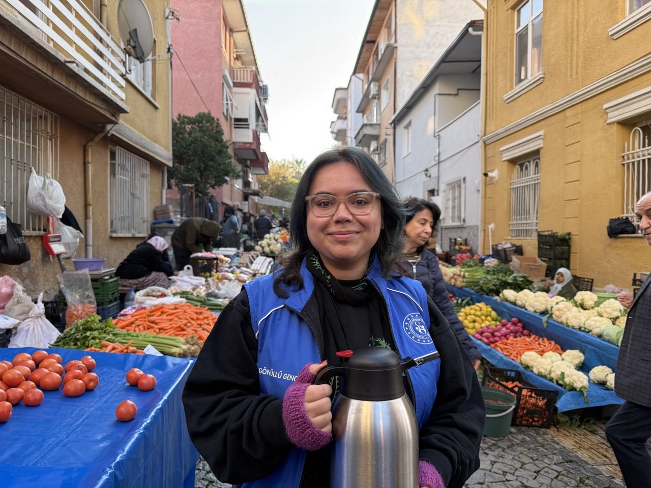 Gönüllü gençlerden pazar esnafına sıcak ikram