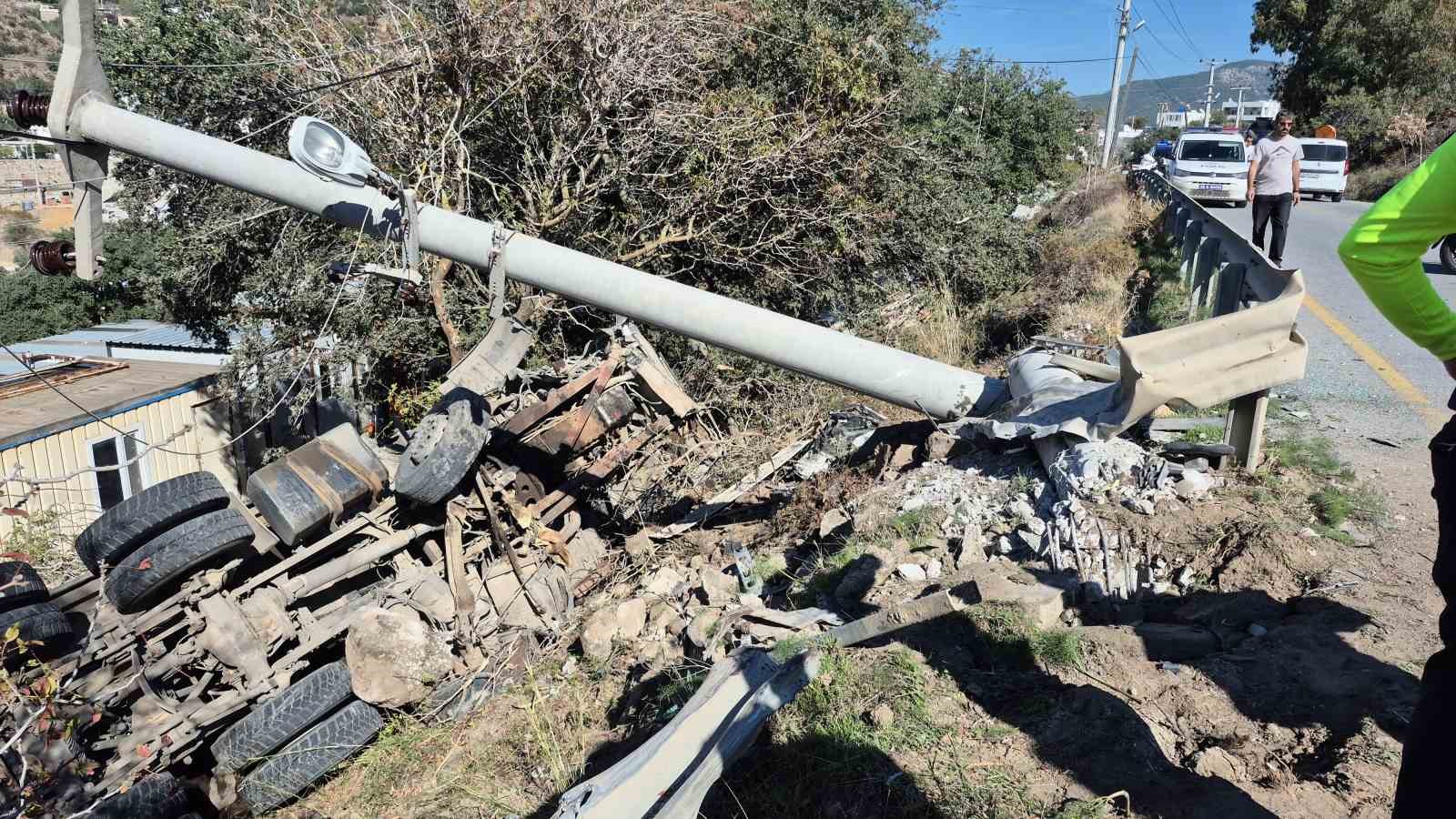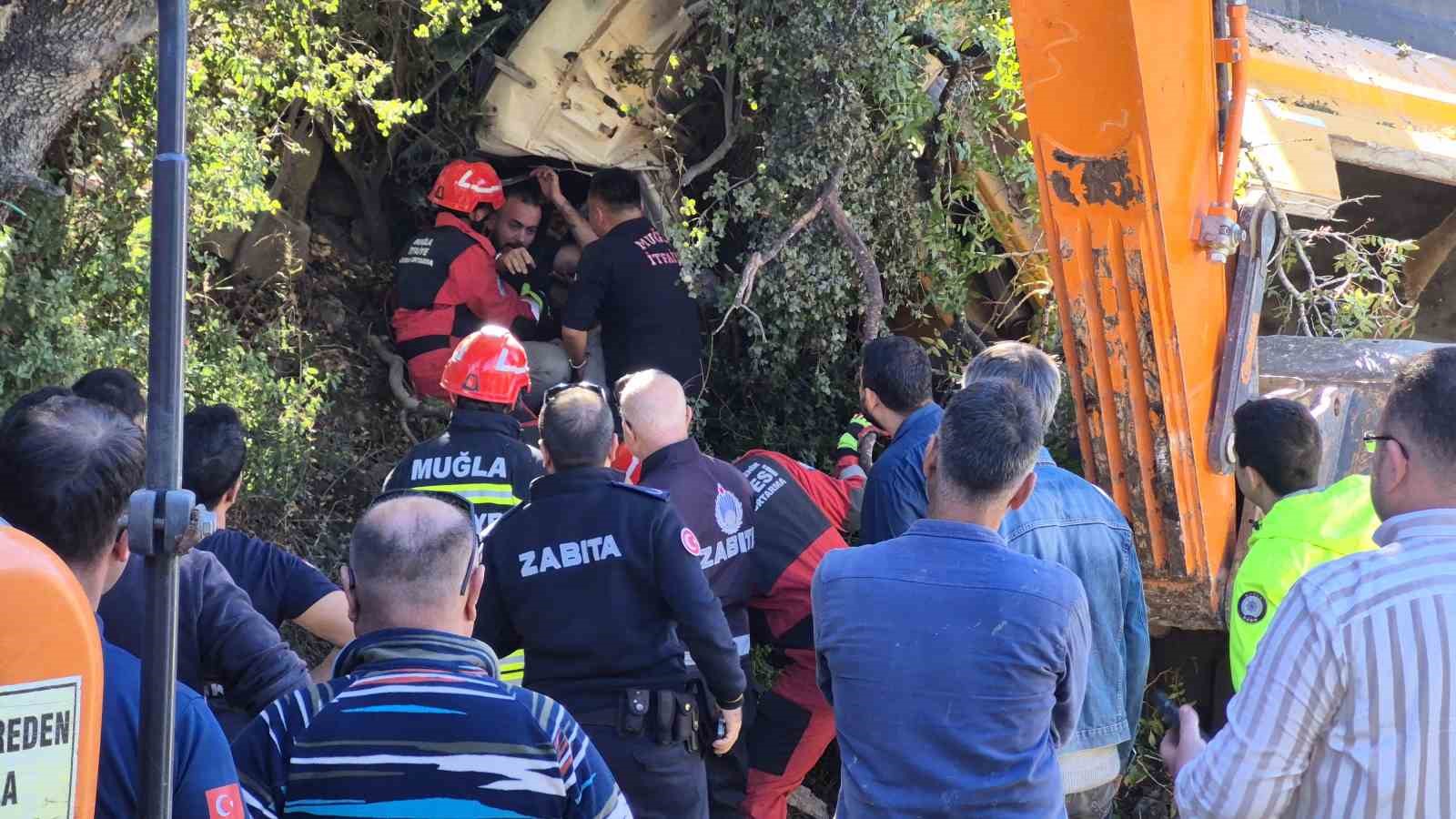 Muğla’nın Bodrum ilçesinde şarampole devrilen hafriyat kamyonunun sürücüsünü itfaiye ekipleri sıkıştığı yerden kurtararak sağlık ekiplerine teslim etti.