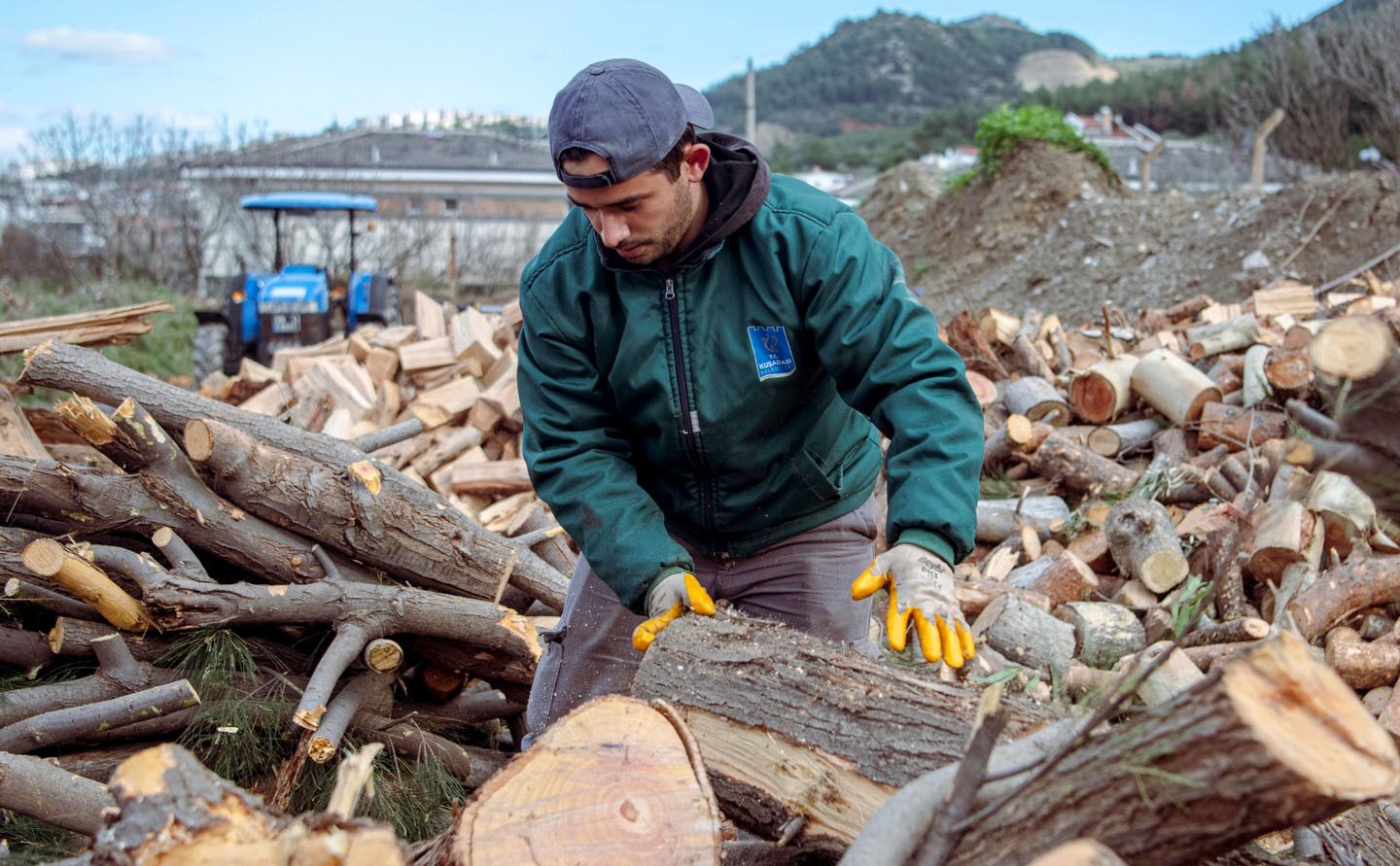 Kuşadası Belediye Başkanı Ömer Günel öncülüğünde sosyal belediyecilik alanında yaşama geçirdiği örnek çalışmalarla dikkat çeken Kuşadası Belediyesi, ihtiyaç sahibi kişi ve ailelere yakacak desteğinde bulunmaya devam ediyor. Bu kapsamda kent genelinde budanan ağaçlardan elde edilen dallar ile kurumuş ağaçların kök ve gövdeleri düzenli olarak toplanıyor. Kamyonlara yüklenen ağaç atıkları, Park ve Bahçeler Müdürlüğü’nün Kadınlar Denizi Mahallesi’nde bulunan çalışma merkezine götürülerek sobaya sığacak boyutlarda kesiliyor.