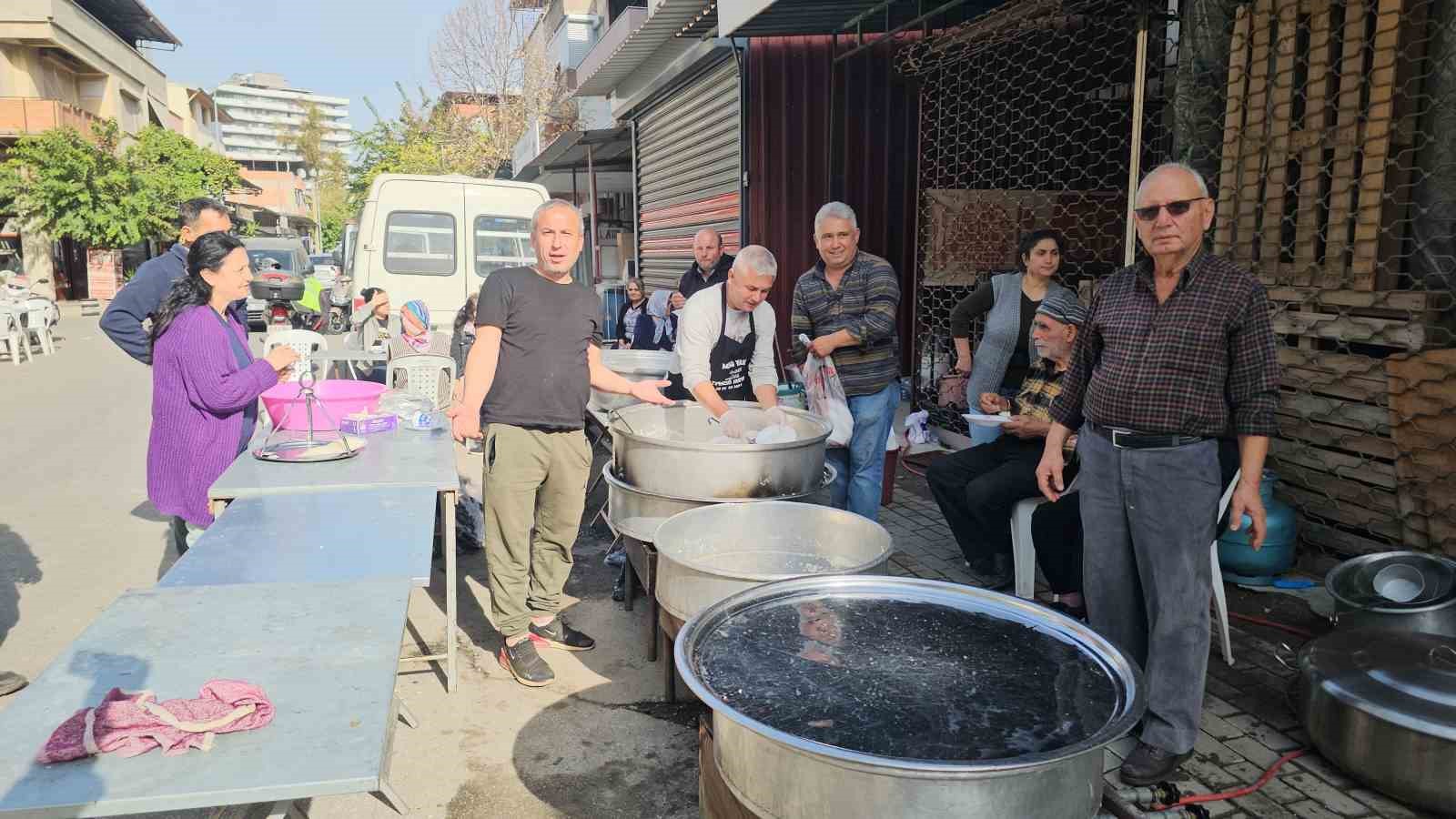 Nazilli merkez Karaçay Mahallesi 94 Sokak’ta bulunan sanayi esnafı her yıl belirli aralıklarla düzenledikleri hayır etkinliklerine bir yenisini daha ekledi. Geleneksel lokma ve keşkek hayırlarının yanı sıra farklı zamanlarda pilav, tavuk, helva ve ayran hayrı ile de dayanışma ve kaynaşmanın en güzel örneklerini sergilemeye devam eden 94 Sokak sakinleri, bugün de bin 500 kişilik ikramda bulundu. Sokak sakinlerinden aşçı Durmuş Tobal’ın öncülüğünde bir araya gelen esnaflardan Ömer Kalaycı, Hüdaverdi İlbay, Serkan Pakelli, Niyazi Şimşek ve Nevzat Karakaş, aralarında topladıkları paralarla malzeme aldılar. Sokak içerisinde kurdukları masalarda konuklarına hem ikramda bulundular hem de hayatlarını kaybetmiş esnaf dostları için mevlit okutup dua ettiler.