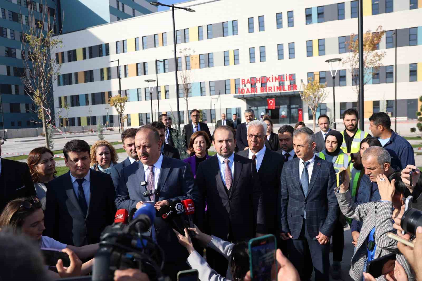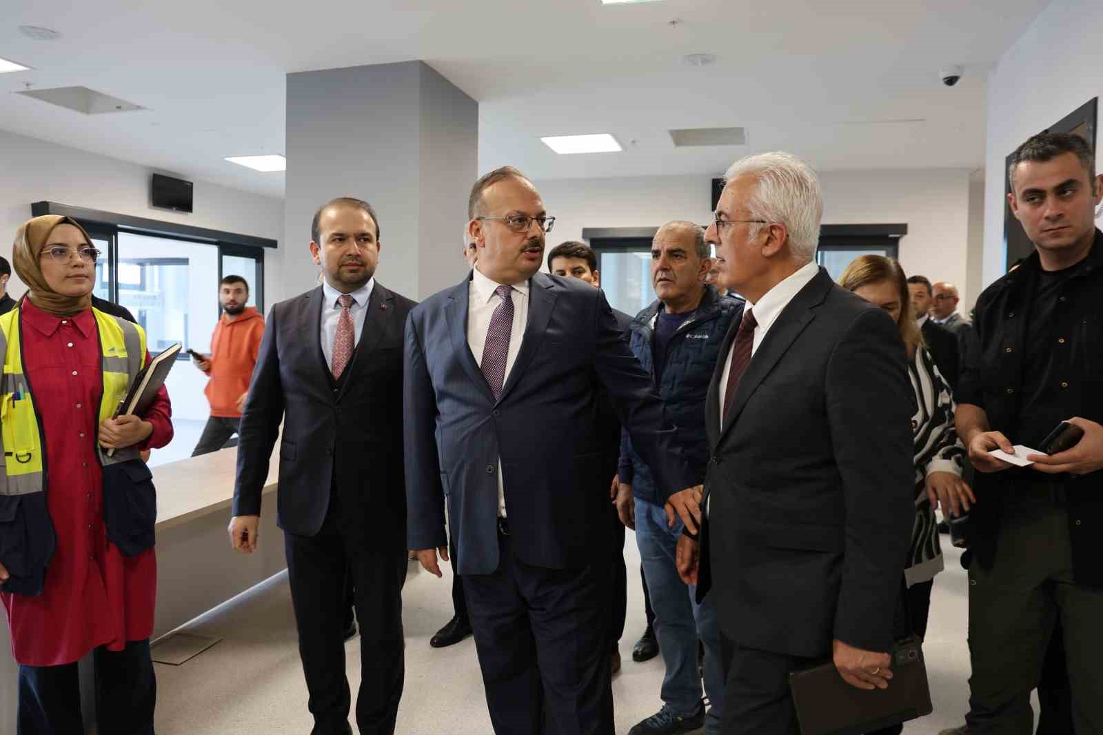 Hastanenin kurucu ekibi ve İl Sağlık Müdürü Eser Şenkul ile birlikte hastanede incelemelerde bulunan Vali Yakup Canbolat, “Kapasite artışlarına baktığımız zaman şu anki mevcut hastanelerimizle kıyaslandığında 221 olan poliklinik sayısı 365’e çıkacak. Yoğun bakım ünitemiz 156’dan 250’ye, ameliyathane sayımız da 25’den 34’e çıkacak. Kemoterapi yatak sayısı 20’den 54’e, fizik tedavi ünitesi 20’den 45’e, palyatif bakım yatak sayısı 21’den 60’a çıkmış olacak. Geçici kabul aşamasından itibaren Aydın Devlet Hastanesi, Atatürk Devlet Hastanesi, Kadın Doğum ve Çocuk Hastalıkları Hastanesi bu kampüse taşınmış olacak. Mekanik cihazların ve diğer tesisatın şu an testleri yapılıyor. 1 Aralık tarihine kadar bunların tamamı da inşallah bitirilmiş olacak. Bütün tefriş malzemelerimiz hazır. Onları her gün taşıyarak artık burada montajlarını yapıyoruz. Bu montaj işini de Kasım ayı sonuna kadar bitirmiş olacağız. İnşallah Aydınımıza çok hayırlı bir hizmeti hep birlikte açma şerefine hepimiz nail olacağız. Ben Aydınımıza, ülkemize ve vatandaşımıza hayırlı olmasını temenni ediyorum” dedi.